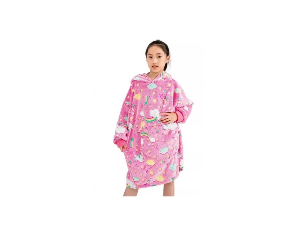 Hřejivá fosforeskující deka s rukávy a kapucí