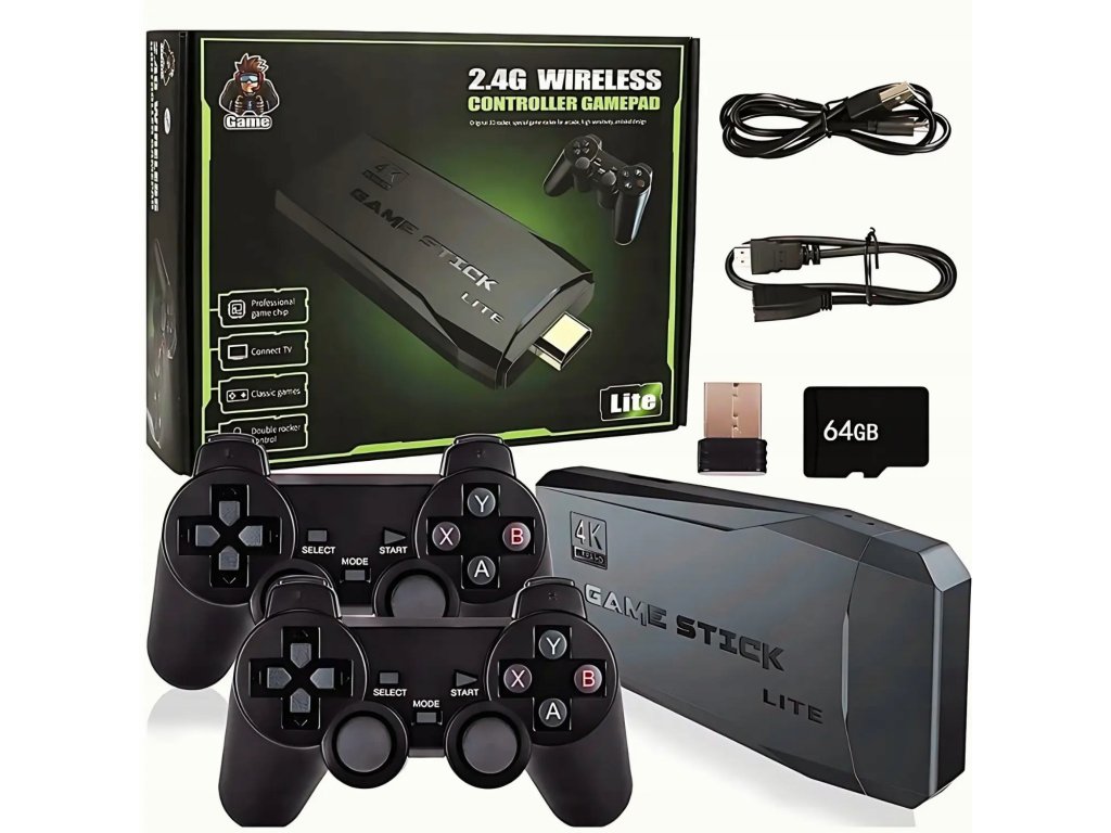 Game Stick Lite 64GB – Retro herní konzole 4K (2× bezdrátový ovladač)