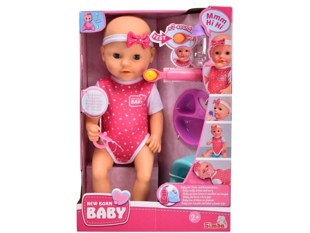 New Born Baby – interaktivní panenka s pitím a čůráním (růžová)
