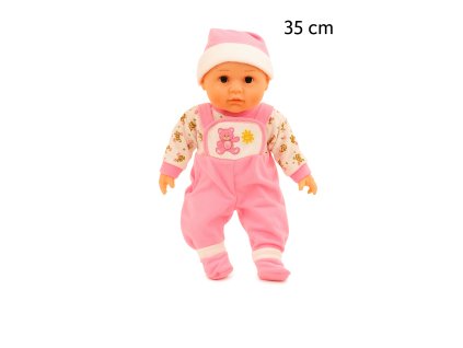 Roztomilá panenka miminko v růžovém oblečku a čepičce. Velikost cca 35 cm, vhodná pro děti od 3 let.